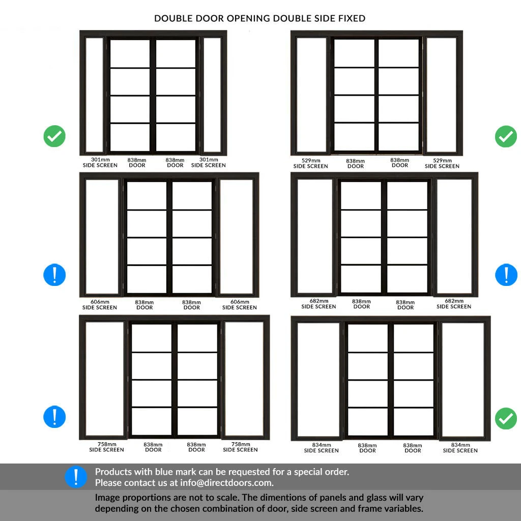 - Door position: Double doors are central with side inset screens on the right and on the left.