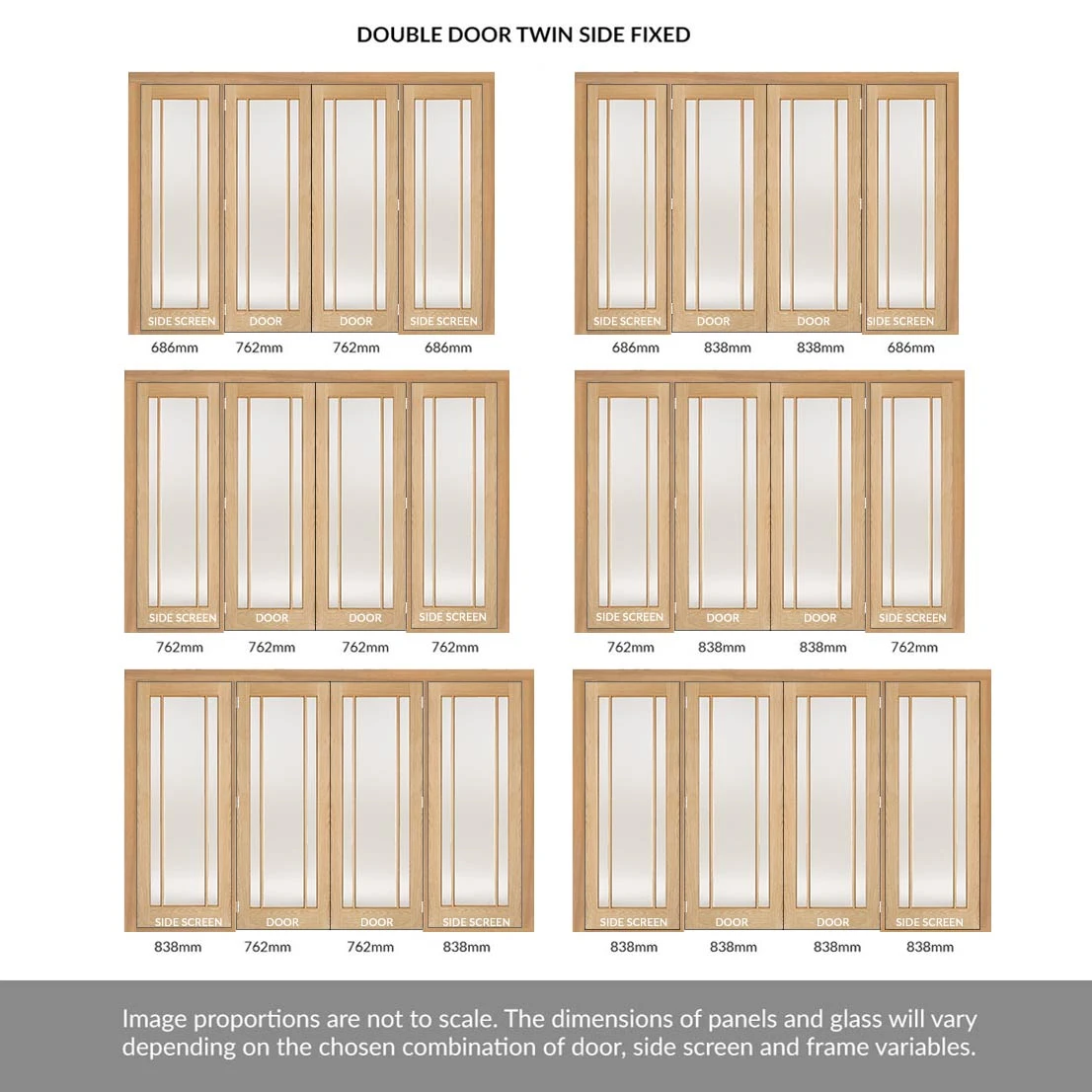 - Aesthetics: Please note any side screens / insets that are narrower than the door or double door will in some instances have smaller or larger glass widths dependent on your choice, please make sure this is fully understood before purchase as these are a bespoke item and cannot be returned.