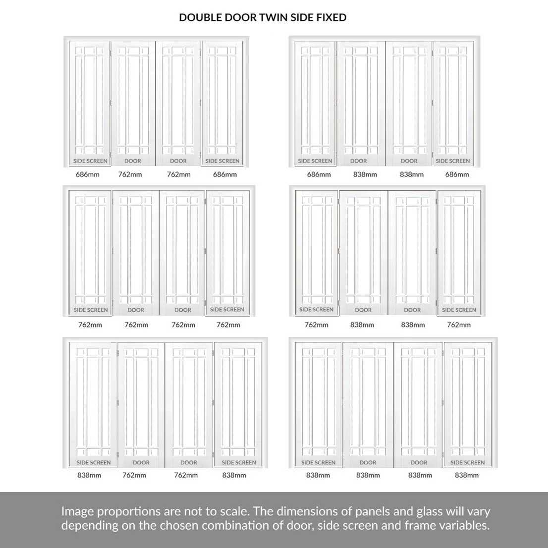 - Aesthetics: Please note any side screens / insets that are narrower than the door or double door will in some instances have smaller or larger glass widths dependent on your choice, please make sure this is fully understood before purchase as these are a bespoke item and cannot be returned.