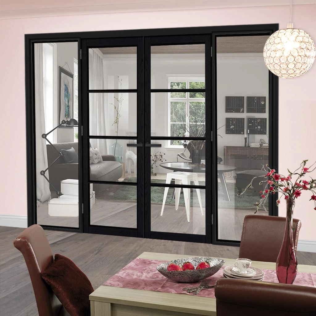 - Door position: Double doors are central with side inset screens on the right and on the left.