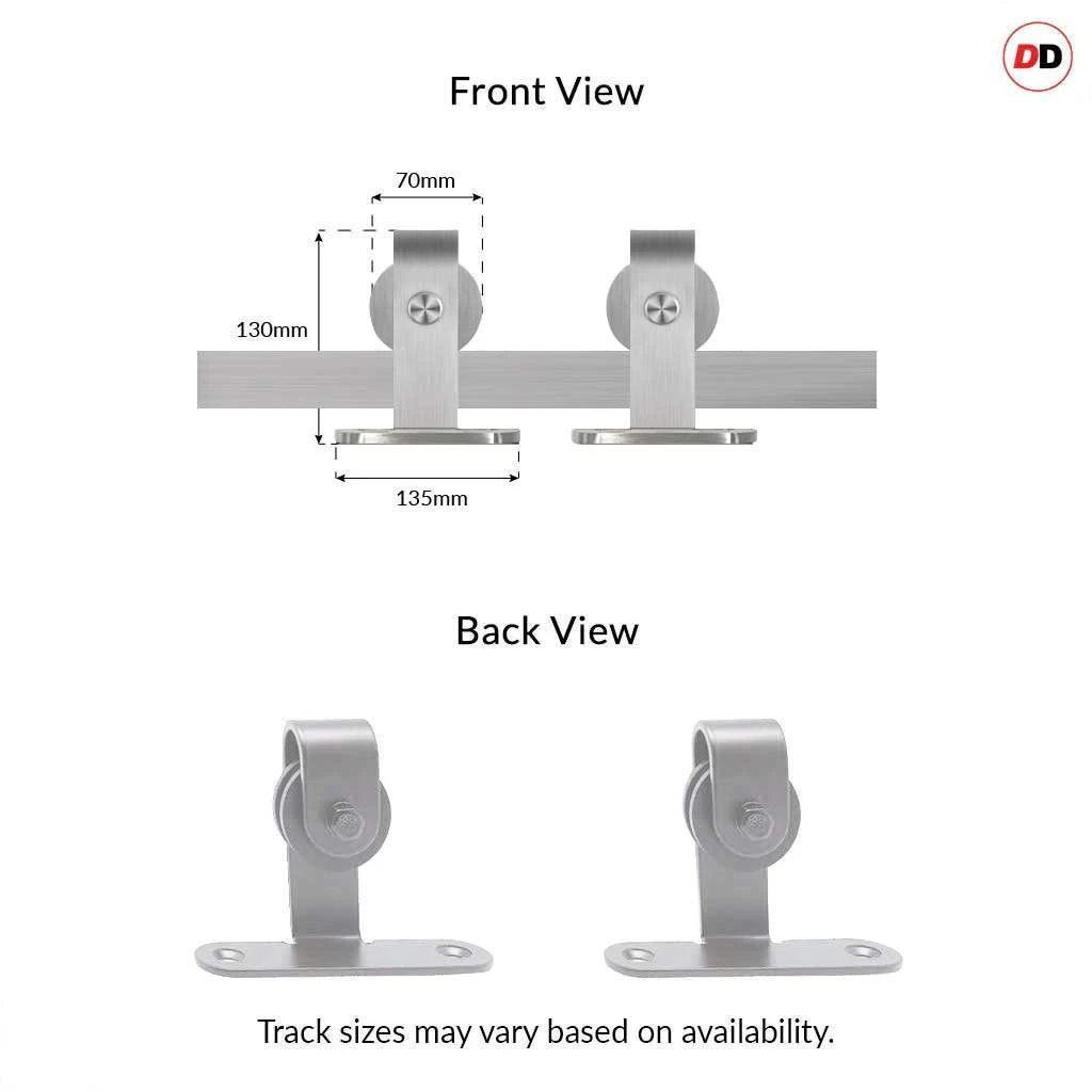 - A high-quality top mounted sliding track system finished in stainless steel, the top mounted track is screwed directly into the top of the door which gives the whole system a very sleek look.