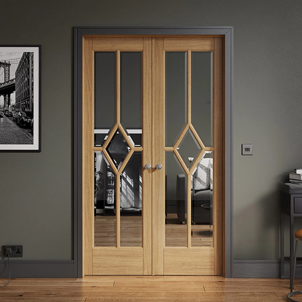Available in Pre-finished Oak Veneer the internal Reims Room Divider has a traditional style and uses clear glazing in diamond formations to give it a recognisable look. The W4 is perfect for separating rooms without losing any natural light.